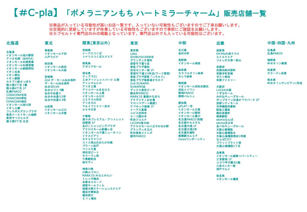 ※商品が入っている可能性が高いお店一覧です。導入がない可能性もございますので、あらかじめご了承くださいませ。